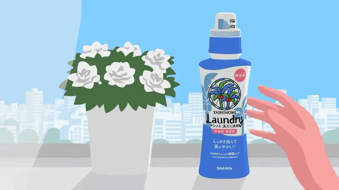 Since its launch in 1971, Yashinomi Laundry Detergent has been loved for its concept of being gentle on both people and the planet, with a fragrance-free and colorant-free formula. Sozi produced an animated commercial for the brand, based on illustrations by artist Hiroki Nishiyama, brought to life through animation by Gyorai Eizo. The result was a refreshing commercial that evokes a sense of breeze and lightness.